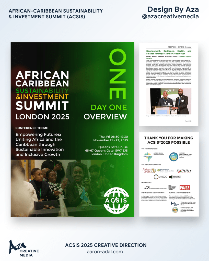 Being trusted to carry the full creative and operational responsibility for that journey — for two consecutive years — is something I and ACM don’t take for granted. ACSIS 2025 closed with a call for stronger support of African and Caribbean businesses and a reaffirmation that unity, cooperation, and action will drive lasting transformation. It’s a message that resonates well beyond the room it was said in.